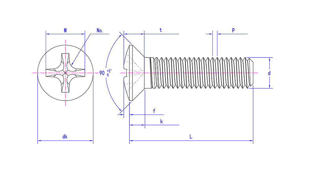 สกรูหัวจมแบน DIN965 90° พร้อมแบบฝังครอส H
